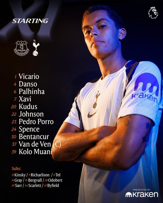 北京时间10月27日0:30,英超第9轮,埃弗顿主场对阵热刺。赛前首发公布。