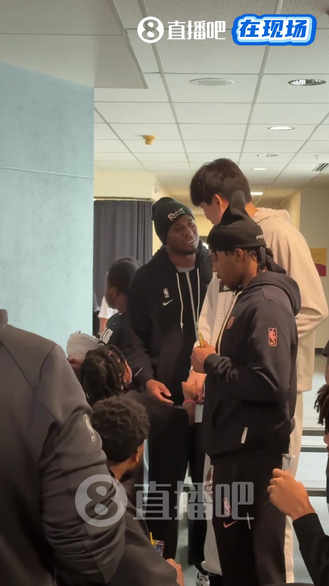 喜笑颜开范乔丹在球员通道开心表示拿下胜利启程赌城